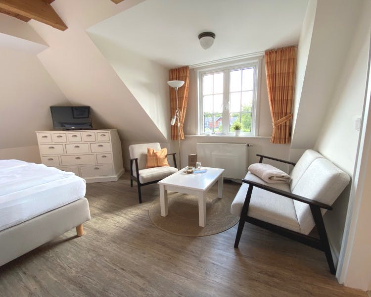 Three lovingly furnished double rooms on the upper and ground floor of the traditional building: