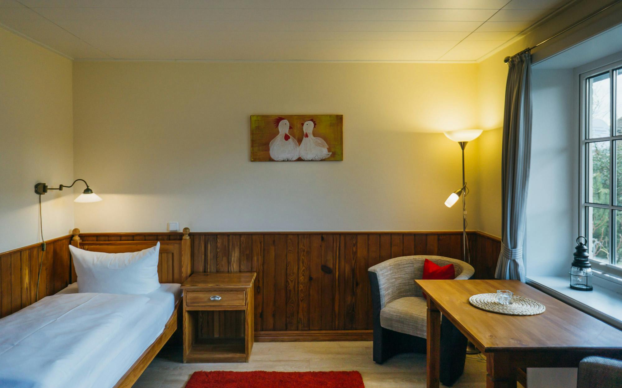 A lovingly furnished single room on the ground floor of the traditional building: